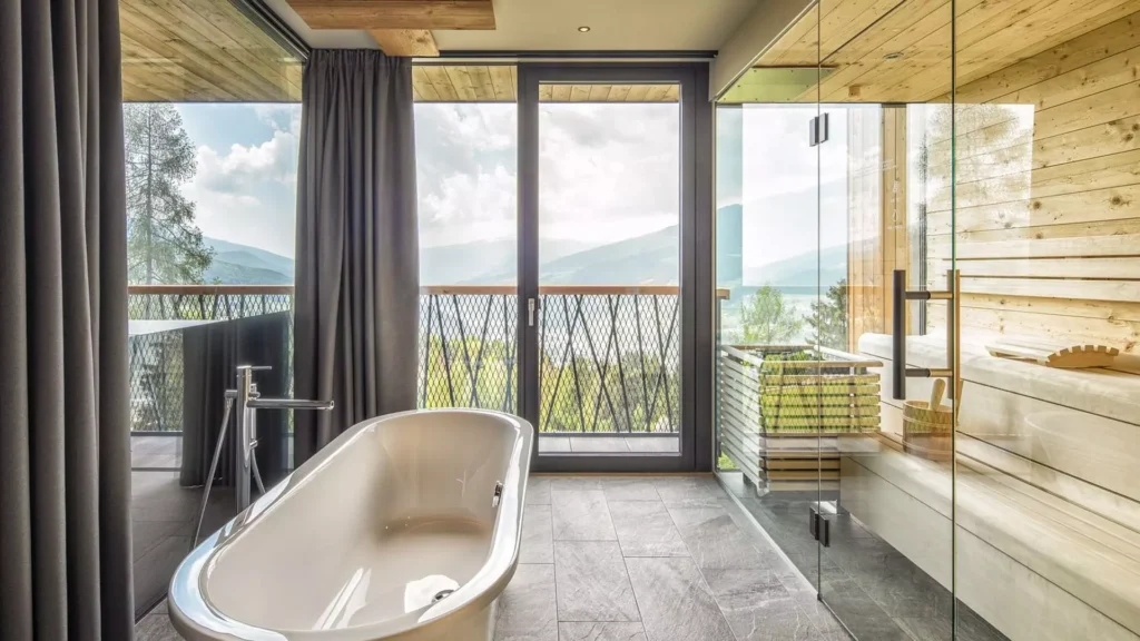 Warm-modern suites open to terraces in the trees; pools and saunas look straight into the forest. Dining is ingredient-forward and unhurried; we arrange private corners and chef conversations without fuss. (Pet-friendly suites are available in designated categories.) The overall sensation is cocooning—design that supports presence rather than performance.